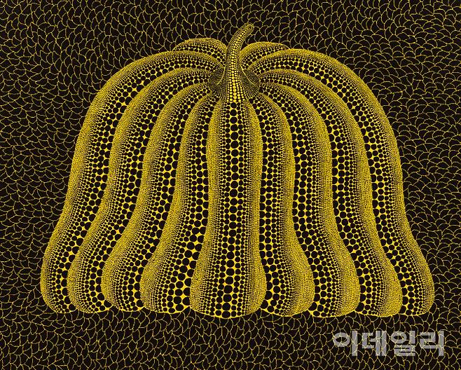 가로 160㎝, 세로 130㎝ 크기의 이 작품은 검은 그물망 배경 위에 노란 호박이 묵직하게 자리한 구성으로, 호박의 문양과 배경의 패턴이 강렬한 대비를 이룬다는 평가를 받는다. 추정가는 95억~150억원이었으며, 추정가 하한을 넘겨 낙찰되며 하루에 100억원대 낙찰 작품이 두 점 탄생하는 이례적인 기록이 세워졌다.